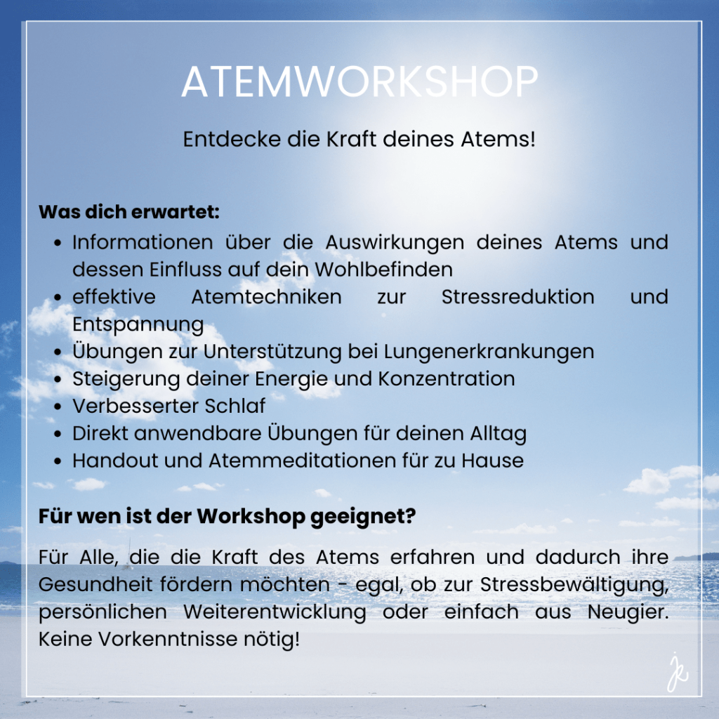 Momentan biete ich regelmäßig Yoga, Atemworkshops, Atemcoachings und Transformative Atemsessions (Breathwork) online über Zoom und live in Kempten (Allgäu) und Vogt an.